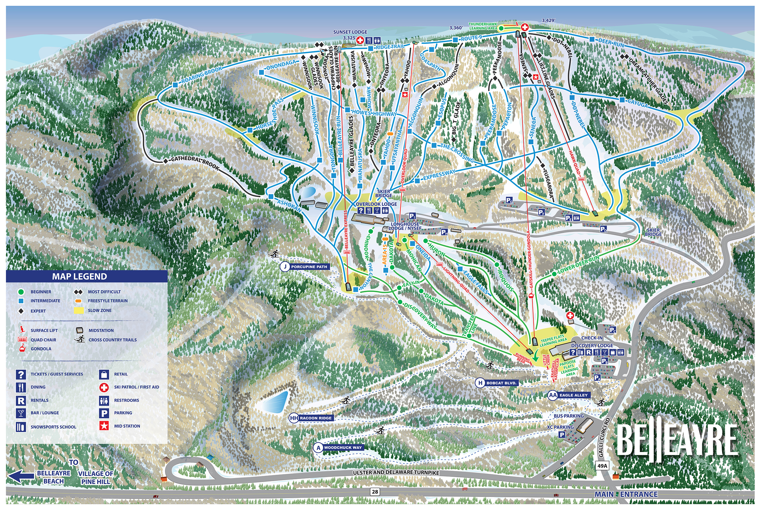 Located in the heart of the Catskill Mountains, Belleayre offers skiing and riding for all abilities across 171 skiable acres. Whether you’re carving down steeps, navigating bumps and glades, cruising long scenic trails, or just starting out on our gentle beginner terrain, there’s something for the entire family to enjoy. Just 2.5 hours from the George Washington Bridge, Belleayre is a close mountain escape with a true alpine feel. Ride the Catskills’ only gondola, enjoy reliable snowmaking and grooming, and explore a mountain with something for everyone. Known for its welcoming atmosphere, quality instruction programs, and family-friendly pricing, Belleayre is a great choice for both first-timers and seasoned skiers and riders.